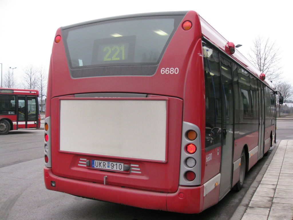 Jag fick äran att åka tillbaka till Ropsten med en av Lidingös nya Omnilinkvagnar, nämligen 6680, som var en väldigt trevlig bekantskap. :) Här har den precis skyltat om från linje 203 till att rulla vidare på linje 221. Förutom denna fick jag en halvtaskig bild på 6681 vid Larsberg och 6679 stod inne vid bussdepån vid AGA och den såg jag först när jag satt på tåget mot Larsberg.