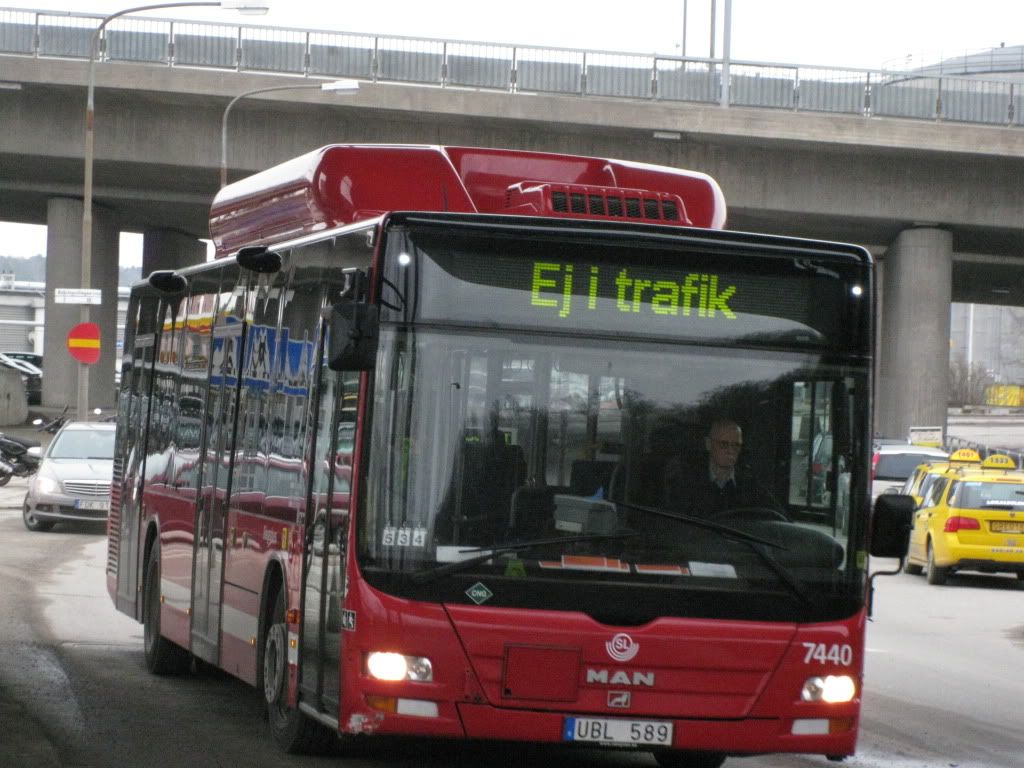 I väntan på att min 73:a, 6112 (se bild 7 och sista bild i denna del), så dök MAN-kortvagnen 7440 upp i full fart. Gissar på att denna skulle tursättas som en 55:a, då den körde upp för backen mot Hjorthagen.