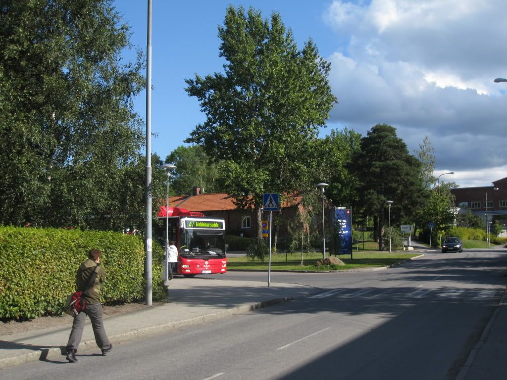 Slutligen, en bild på en av Omnilinkarna, Busslink 4758, dock med fronten i motljus.  :-\ Denna bild användes också i projektarbetet, vid samma ställe som 7507. Även denna bild är tagen vid Karlbergs station.