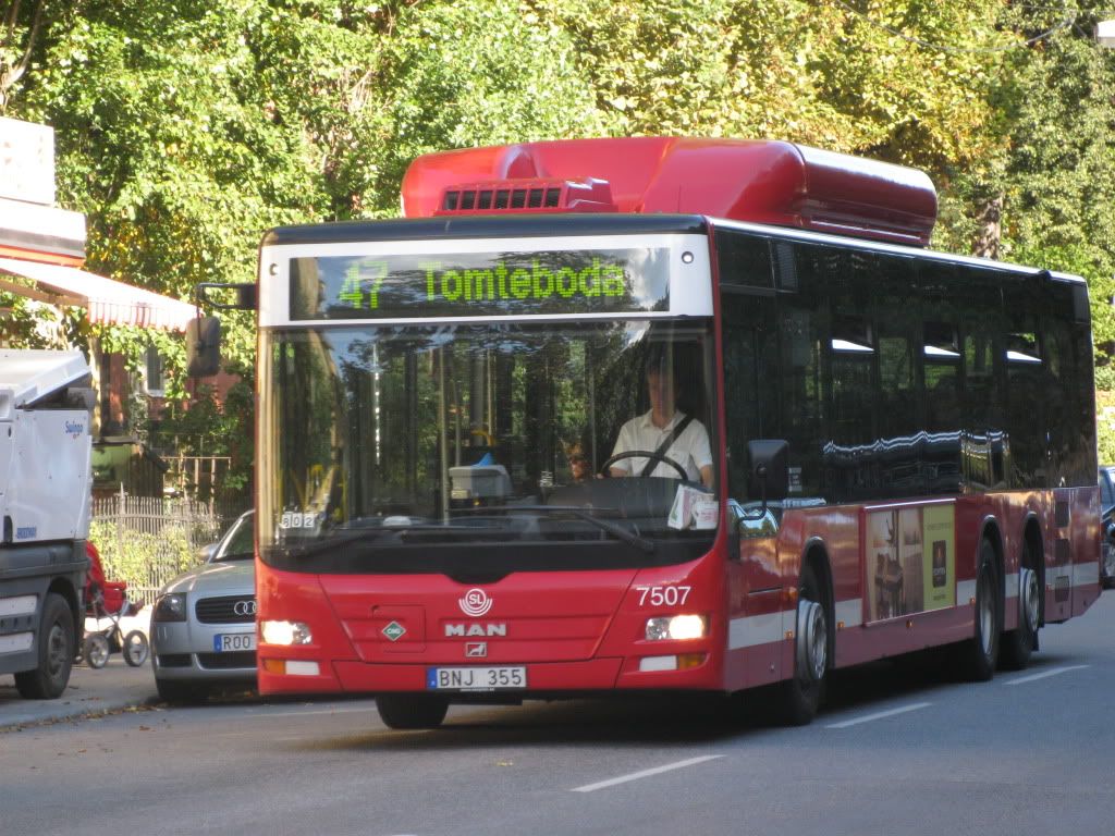 Busslink 7507 kommer i full fart på Karlbergsvägen, i riktning mot hållplatsen som visades på föregående bild i denna tråd. Denna bild användes för övrigt i mitt projektarbete, i samband med miljöfrågor och miljövänligare bränslen.