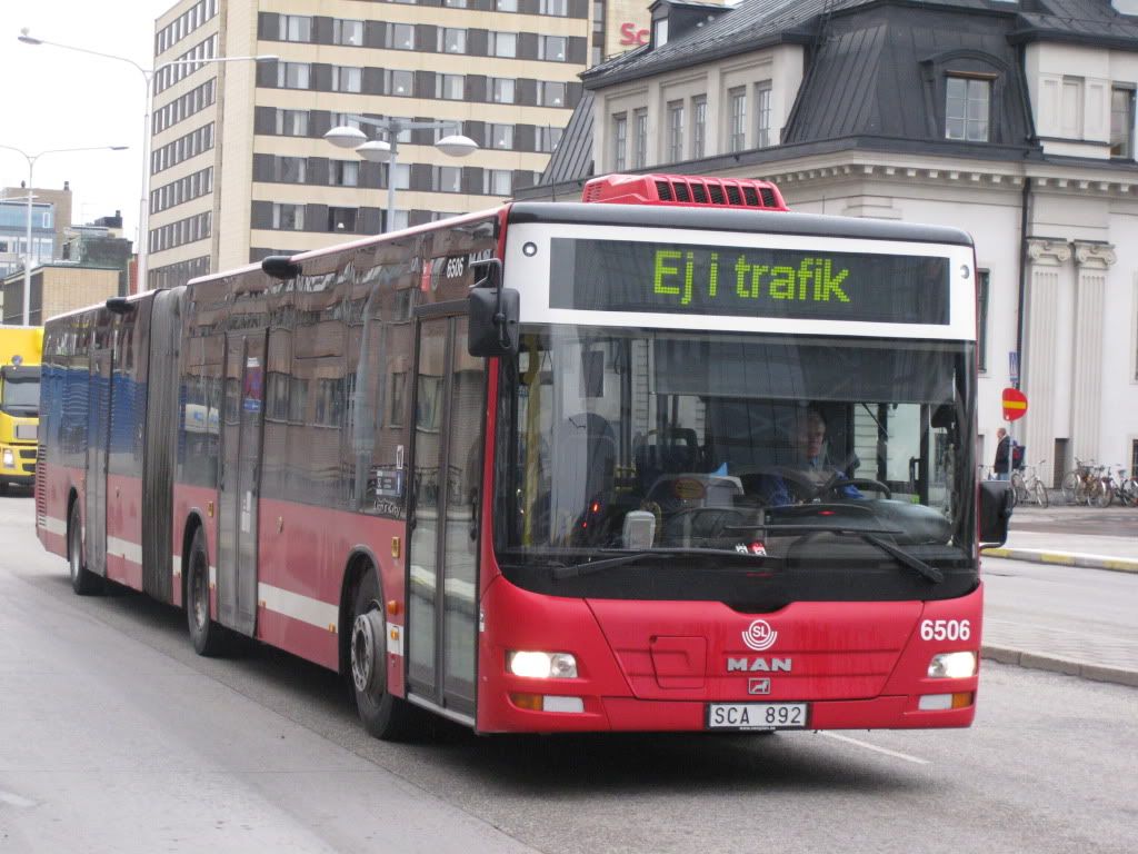 Vi börjar med en buss som inte alls egentligen har med Cityterminalen att göra, men som passerade på en gatusträcka, där denna typ av buss väl inte är särskilt vanlig. Eftersom det här var på morgonen, runt 9-tiden, så gissar jag på att denna buss har ankommit till Sergels torg på 561:an för inte allt för längesedan och som nu är på väg tillbaks till Kallhällsdepån, där jag gissar på att denna är stationerad. Bussen är Nobina 6506.