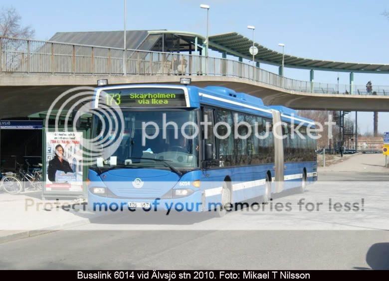 Här kommer några bilder på Omnillink-bussar tillhörandes Busslink Söderort, fotograferade vid Älvsjö stn i april 2010. Busslink 6014 är en särling bland Söderorts blåbussar. Övriga blåbussar har etanoldrift och ligger i serien 3704-3712. 6014 levererades ursprungligen SL-röd till Busslink Handen.