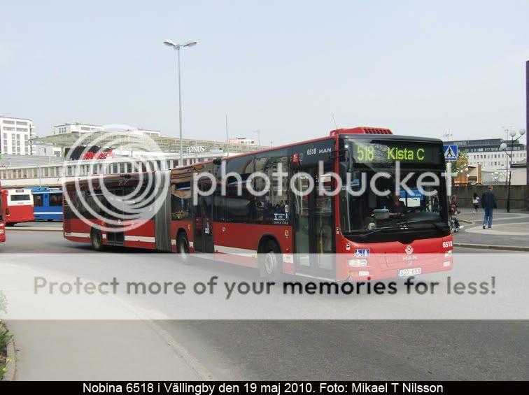 En av Nobina Kallhälls f.d. Södertäljevagnar, vagn 6518, på en ledbusstur på linje 518. Har alla MAN-ledbussarna i serien 6513-6518 flyttats från Södertälje till Kallhäll? Om jag minns rätt så levererades 6501-6512 ursprungligen till Kallhäll.