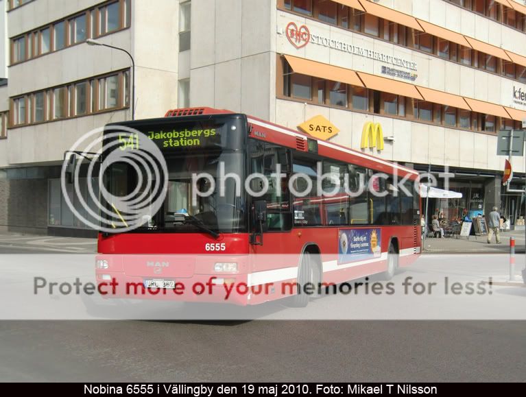 En av Nobina Kallhälls många MAN A78-bussar, vagn 6555, som har blivit av med den vita maskeringen kring linje- och dest.displayen.