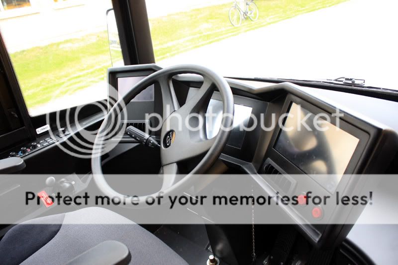 Snyggare ratt men i övrigt för mycket dataspel för min smak. Och den där gamla Neoplan-blinkersspaken är förvisso funtionell men kanske skulle man passat på att ge även den lite modernare design ;)? Inredningen i övrigt verkar dock vara ett lyft. Snyggare med infälld belysning.