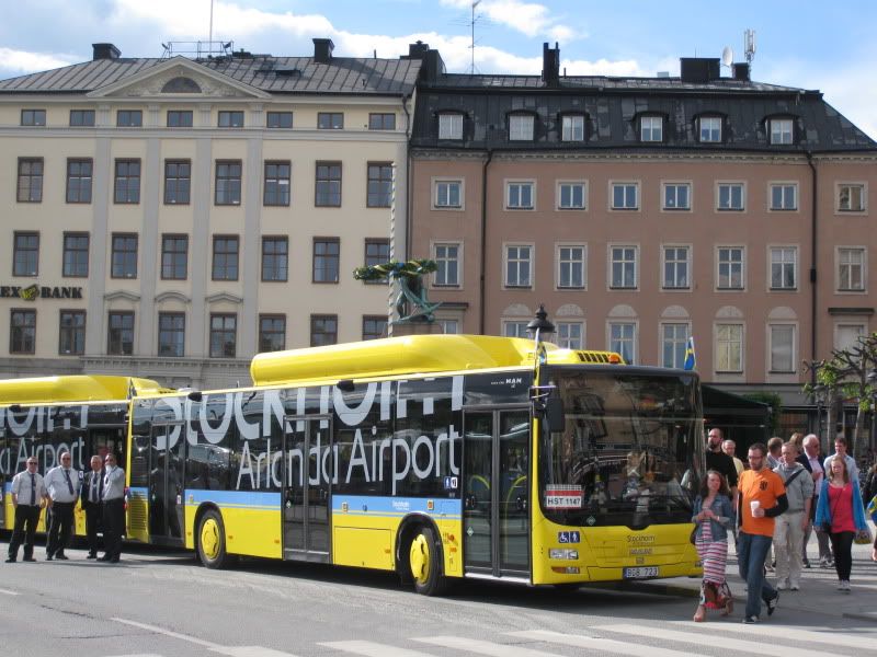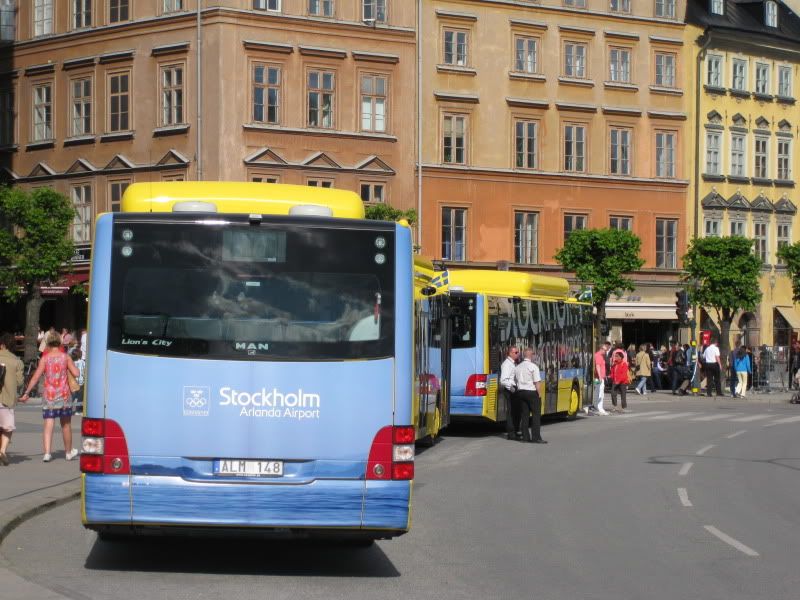 3 av Arlandas terminalbussar hade flytt flygplatsen och stod vid Kornhamnstorg igår. Bussarna var FPB 065-067.
