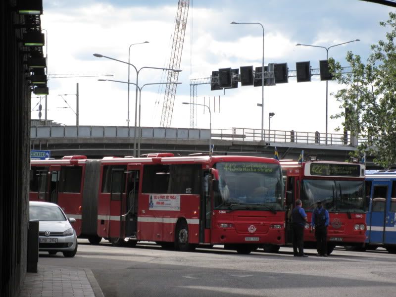 Som tidigare sågs på exempelvis Arlandas terminalbussar, så flaggades det en del i och med bröllopsdagen. Nacka/Värmdö-bussarna hade flaggor på i stort sett alla bussarna när jag tog mig ner lite senare till Slussenterminalen.