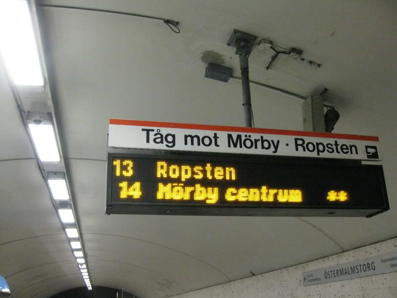 Hur kan Ropstentåget och Mörbytåget befinna sig på samma spår samtidigt?  ;D Jo, givetvis för att Mörbytåget låg mitt i häcken på Ropstentåget och så fort Ropstentåget började röra på sig, så kom Mörbytåget in på stationen.