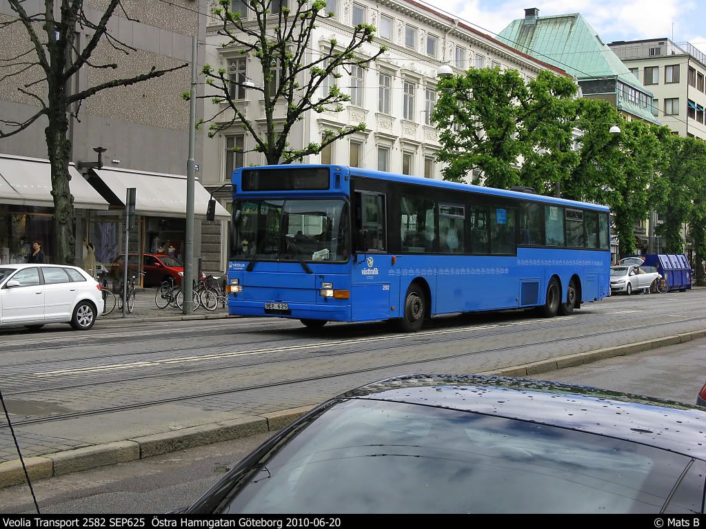 Stombusslinje 16 körs av Veolia med GS gamla 24-metersbussar, här är de fortfarande märkta med GS inventarienummer: