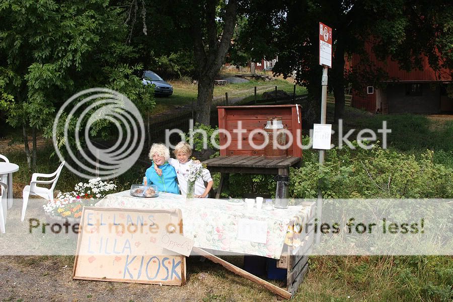 Tur att man kunde glädja sig åt något så somrigt som detta när man kom fram!  :) Saft och bulle var precis vad jag behövde innan återfärden mot Stockholm. Grabbarna sa att jordgubbssaften var hemgjord... Jag vette f-n, men bullarna hade de bakat (eller mormor i alla fall)  :)