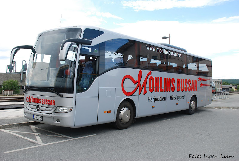 Torsdag 29. juli sto denne Mercedes Tourismo'n fra Mohlins på Røros Jernbanestasjon.