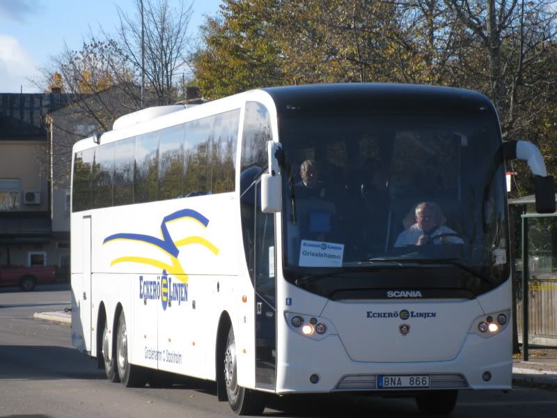 Eckerölinjen på väg mot Grisslehamn, efter att ha gjort ett stopp vid busshållplatsen.