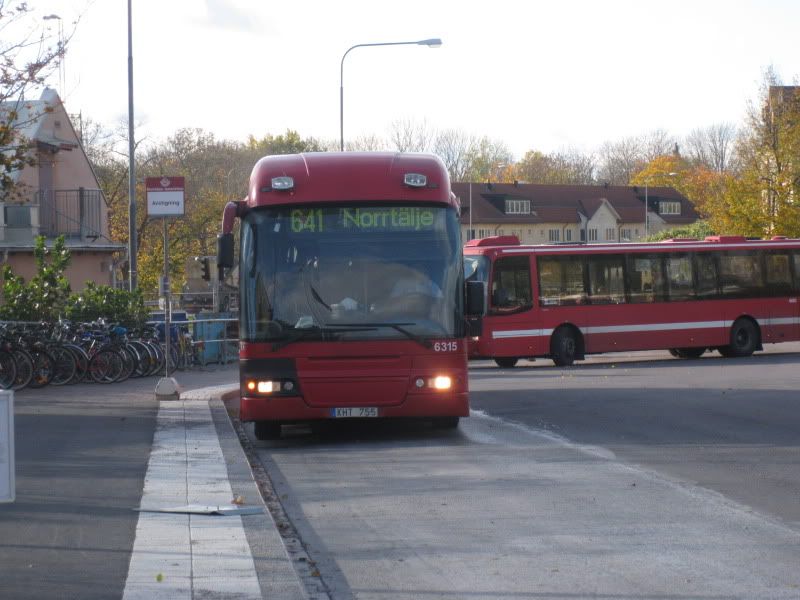 En buss från Hallstavik, i form av 6315, som tidigare verkade ha fått en smäll runt höger framljus. Samtidigt så lät den ganska mycket, mer än en vanlig B9S...  :o  ;D