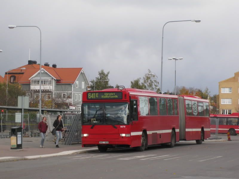 En f.d. specialbyggd stombuss, 5679, avgick som en snabbuss 641E mot Hallstavik.
