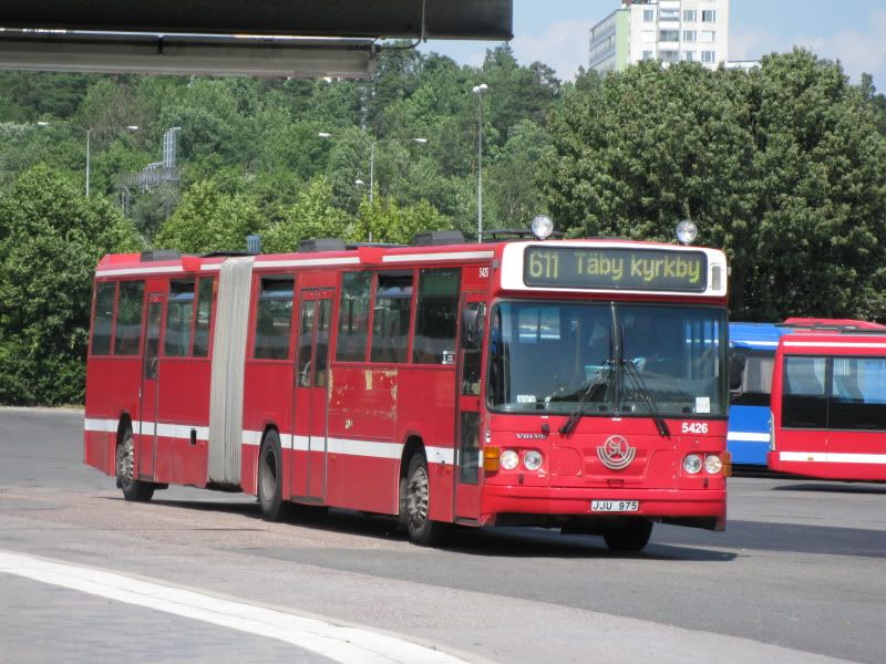 5426 skall sticka iväg mot Täby Kyrkby. Denna är avställd sedan mitten av augusti, men systern 5427 tror jag fortfarande är ute och rullar på. Denna bild togs 13 Juli.