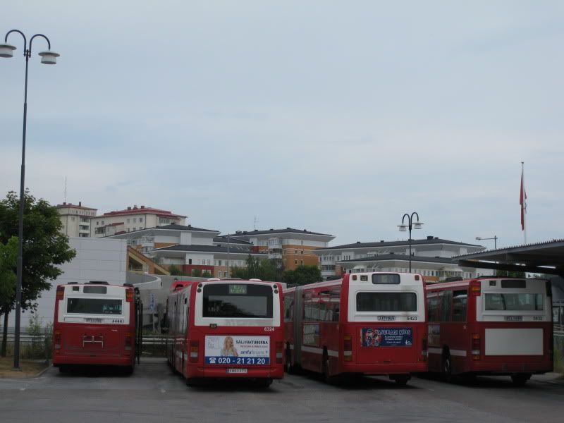 Blandad kompott vid Åkersberga. Från vänster: Busslink 4444, 6324, 5423 och 5632. Fotade den 12 Juli.