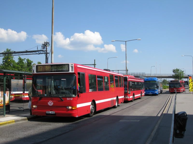 Fullt ös vid Spånga station. Närmast i bild står Nobina 5412 som är tursatt på linje 117. Foto från den 13 Juli.