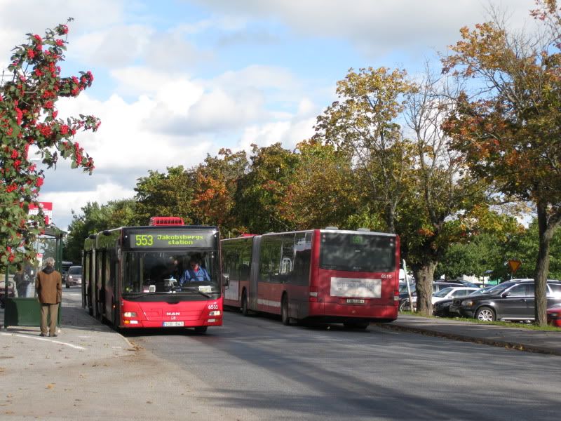 MAN-möte vid Veddesta Centrum, på samma linje dessutom. ;D Till vänster i bild står Nobina 6511 och till höger befinner sig 6515. Foto från den 17 September.