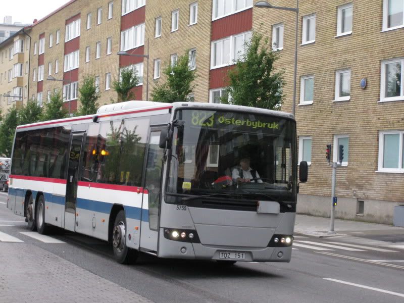 Nobina 5755 lämnar Uppsala Resecentrum i riktning mot Österbybruk. Foto från den 25 Juli.