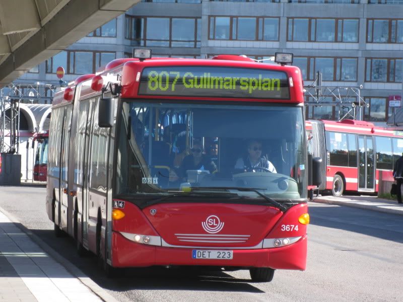 Busslink 3674 ankommer Gullmarsplan. Foto från den 6 Maj.