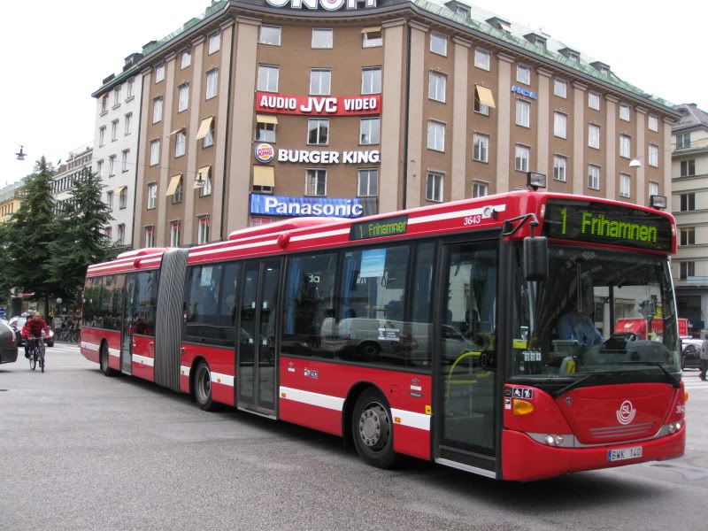 Busslink 3643 på linje 1 i korsningen Kungsgatan/Sveavägen. Foto från den 1 September.