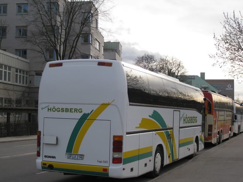 Bröderna Högsbergs Scania Eagle 560 med reg. nr. GFU 316 kom på bild intill Globens T-banestation. Foto från den 17 April.
