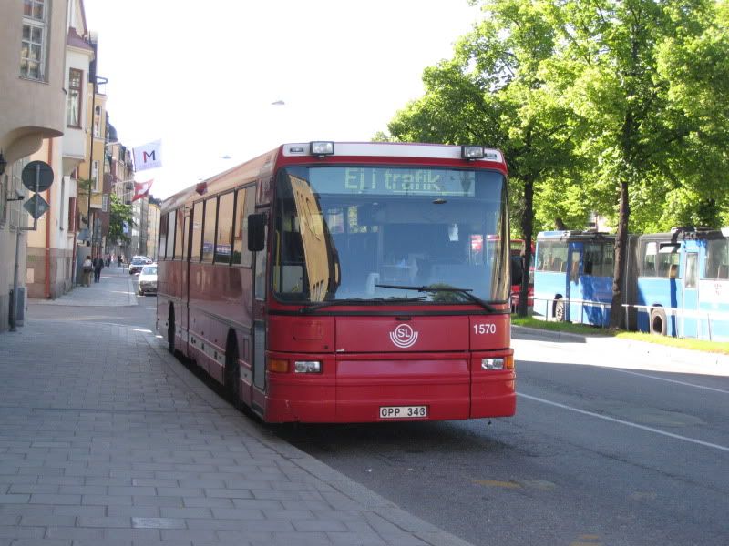 Busslink 1570 på Valhallavägen. Foto från den 24 Juni.