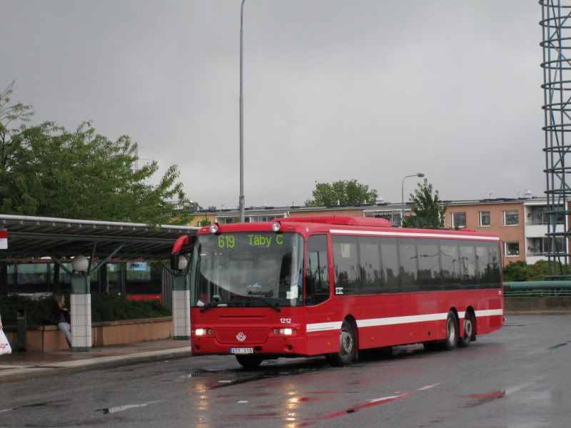 Ljusteröbussen i form av Busslink 1212 har ryckt ut på Täbylinje 619 och ankommer här Täby Centrum. Foto från den 25 Augusti.