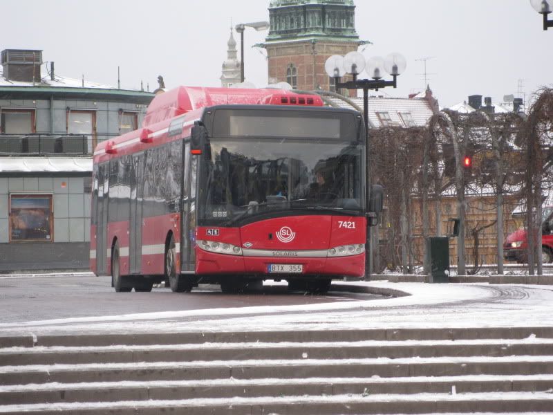 Här står Busslink 7421 efter att ha varit registrerad i landet under en knapp månads tid. Denna bild är ifrån 2009 och togs vid Slussen den 14 December.