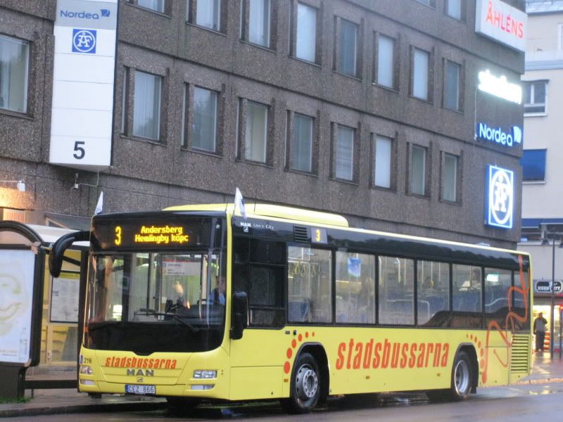 Två av Stadsbussarna Gävles korta MAN-vagnar. På bilderna syns 216 och 229. Båda bilderna är ifrån den 25 Juli.