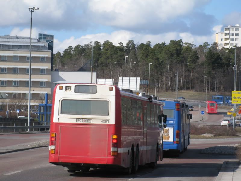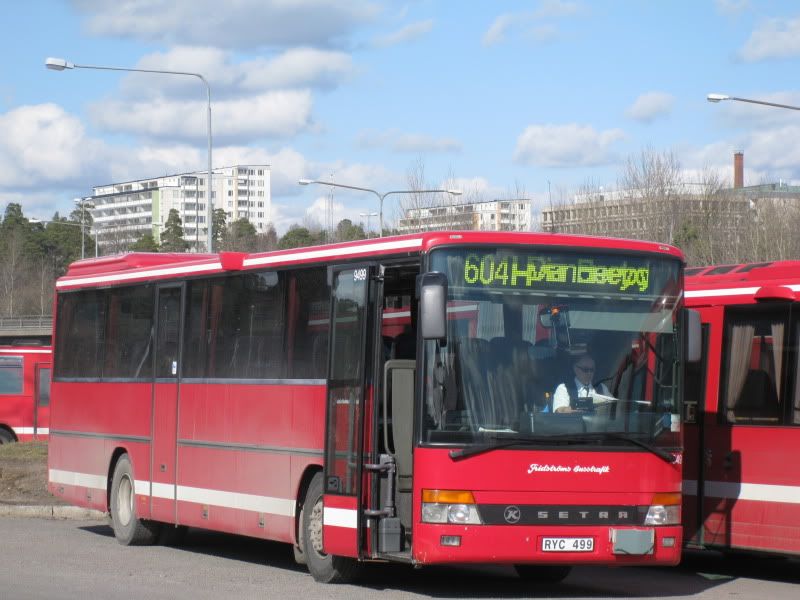 Fridströms 9499 vid Danderyds Sjukhus. Jag gissar på att den skall rulla iväg på linje 604H, men det är inte fullt lätt att urskilja. ;D Foto från den 6 April.