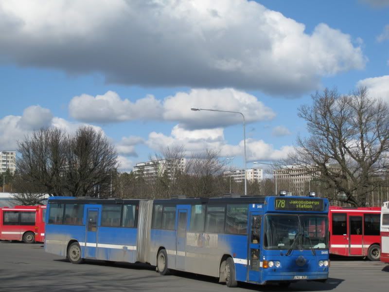 Busslink 5449 rullar ut från uppställningsparkeringen vid DS och skall ut på linje 178. Foto från den 6 April.