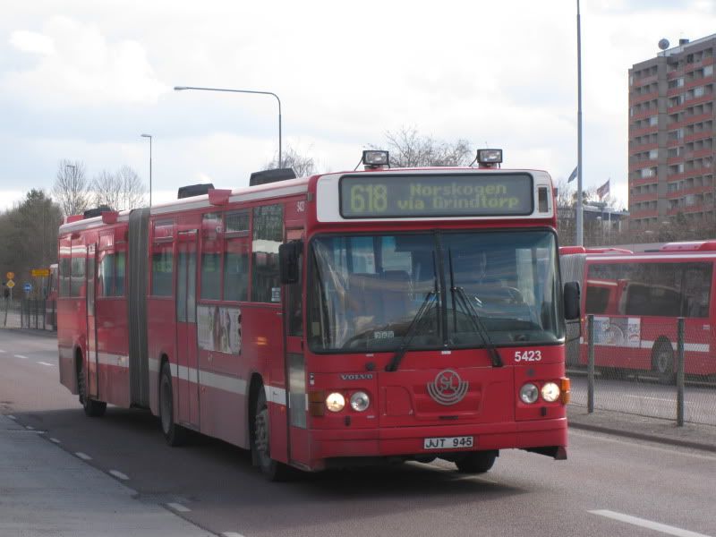 Busslink 5423 skall åka mot Norskogen. Foto från den 6 April.