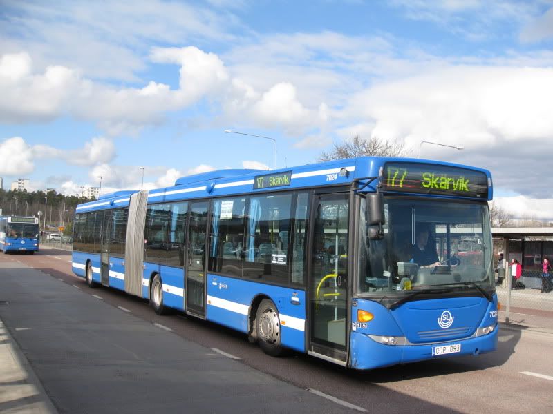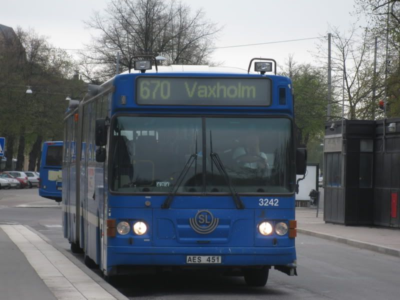 En stombussblå 3242 mot Vaxholm får avsluta light mode - serierna, dvs. bilderna tagna i dagsljus.