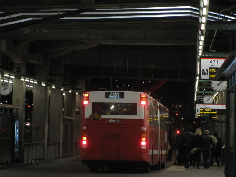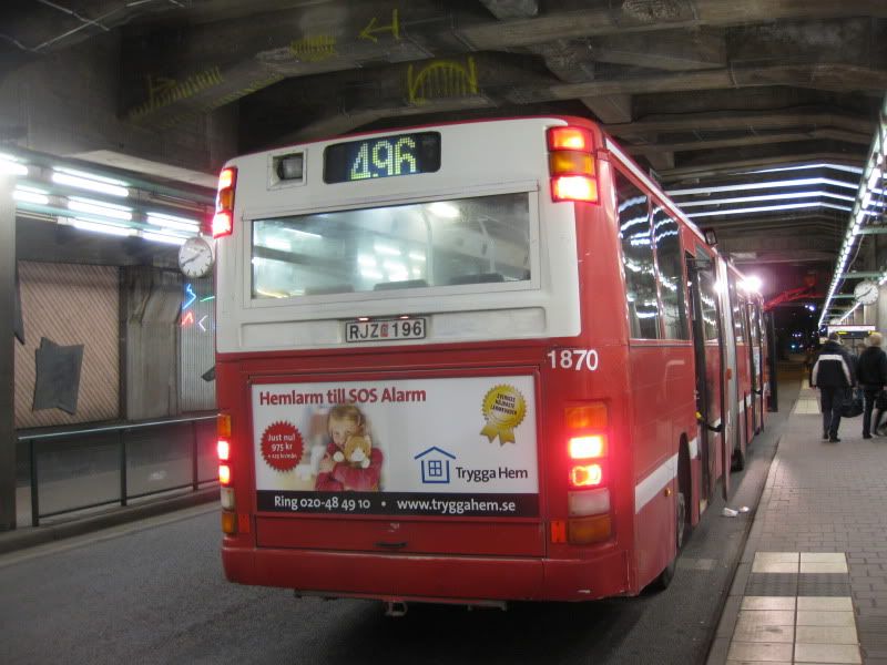 Nobina 1870 har ankommit Slussen från en tur på linje 496. Foto från den 13 Maj. (kl. 00:42)