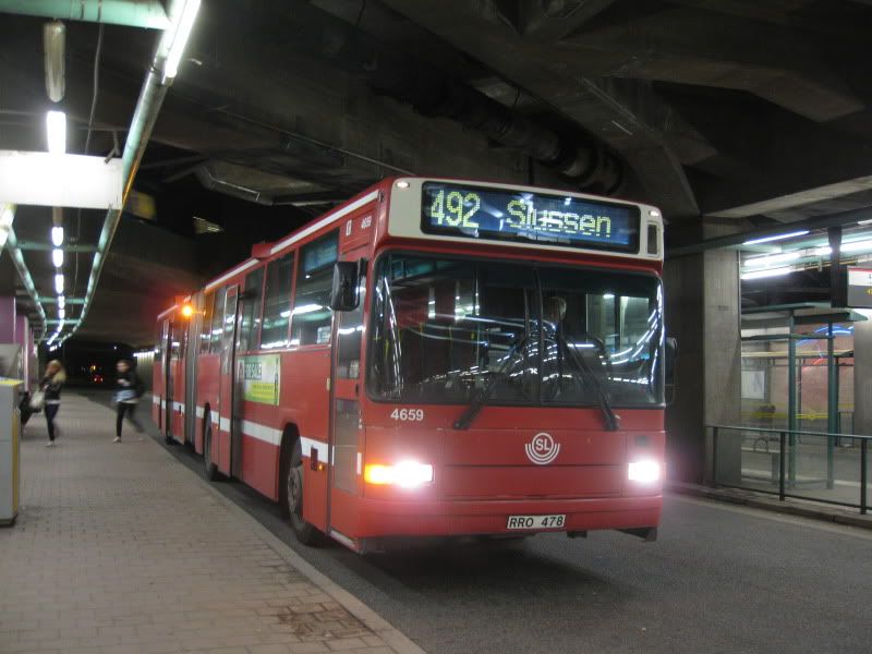 Nobina 4659 har ankommit Slussen. Foto från den 13 Maj. (kl. 01:11)