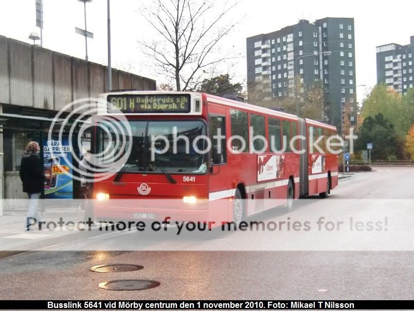 Här kommer några morgonbilder från Mörby centrum. Linje 601 ska normalt sett trafikeras med lågentrébussar, men denna morgon hade man tursatt 5641 på linjen. Samma morgon gick en hel del normalgolvsbussar på lågentrélinjer i Danderyd (601, 602 och 606).
