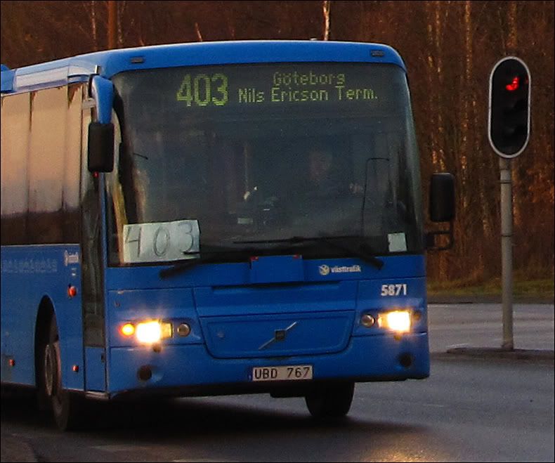 Jo, en blå Swebus 5781 på linje 403 som här ankommer till hållplatsen Agnesbergs korsväg strax norr om Göteborg igår eftermiddag påväg mot centrala Göteborg. :)