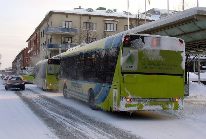 Stämmer bra det Ersa. Samtliga biogasbussar i Örebro. Står rampkopplade utomhus under vindskydd. Medan alla dieselbussar står inomhus nattetid..  8)