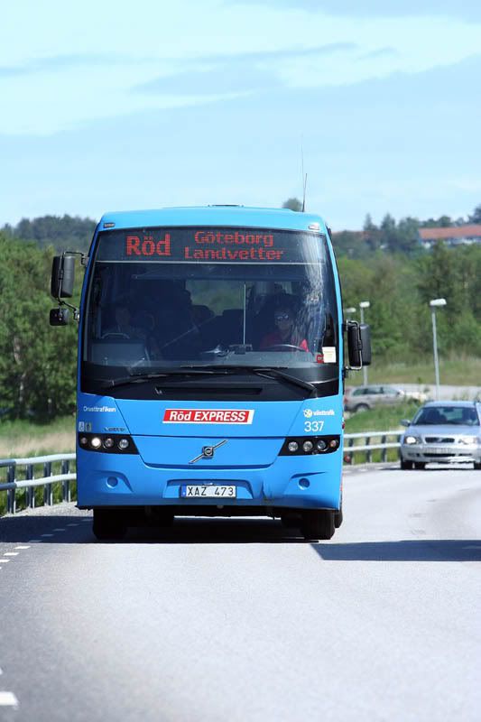 Röd Express har precis lämnat Stenungsund och rullar på länsväg 160 mot Stora Höga för vidare färd mot Göteborg.