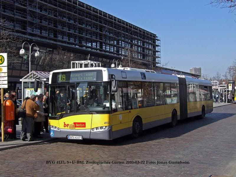 Lite mer från Berlinresan i våras. Denna gång bara ledbussar fotade vid Zoologischer Garten, gamla Västberlins huvudjärnvägsstation och fortfarande en viktig knutpunkt även om det återförenade Berlin numera har en ny futuristisk glasskapelse till centralstation norr om riksdags- och regeringskvarteren.