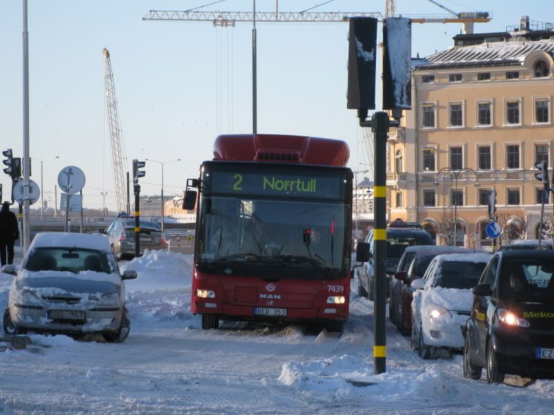Det tog stopp ett stund, det befann sig minst ett par bilar i korsningen framför som hade det svårt att kunna ta sig vidare. Till slut gick det dock. Här inväntar 7440 på att få åka vidare: