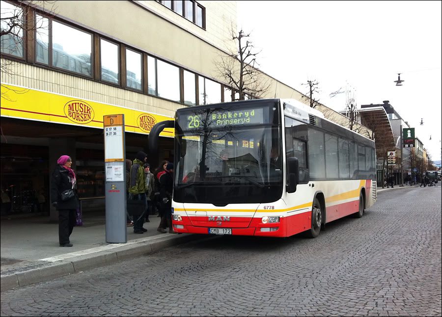 6778 har just anlänt till Juneporten påväg mot Bankeryd. Tog mig även en tur med den från Cigarren till hit, det luktade nytt i varje fall!  ;)
