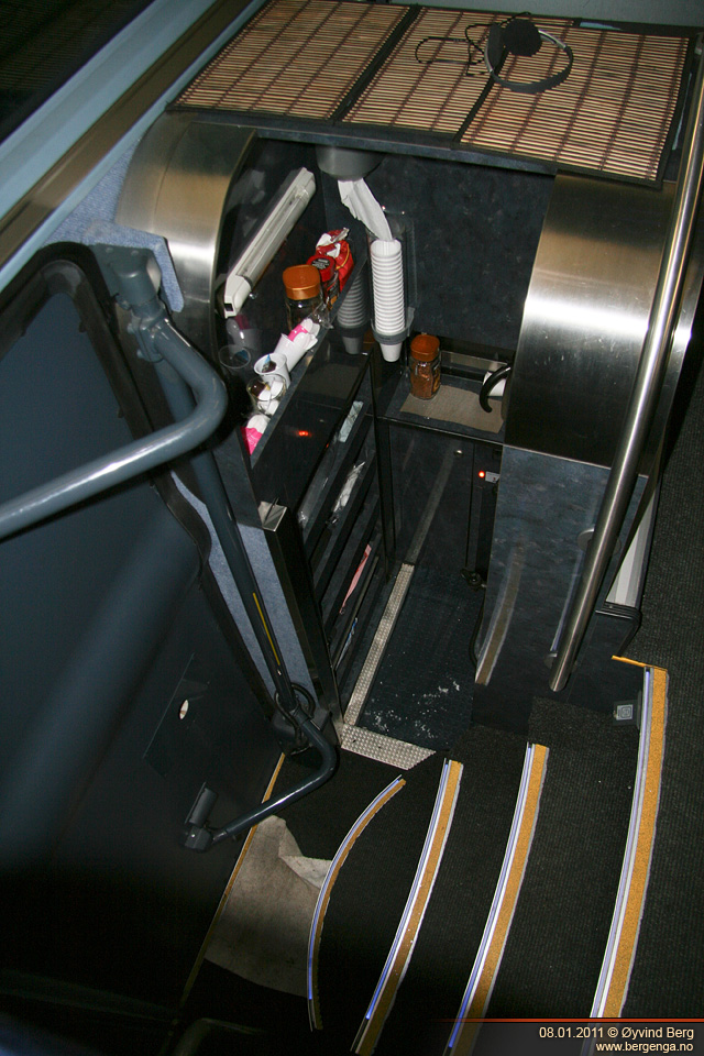 Magnus var spesielt fornøyd med innredningen, og det aller beste var kjøkkenet, som er blant de større busskjøkken jeg har sett. En del av skapene fyller man faktisk på fra utsiden. Ellers ble det et par bilder av resten av interiøret.