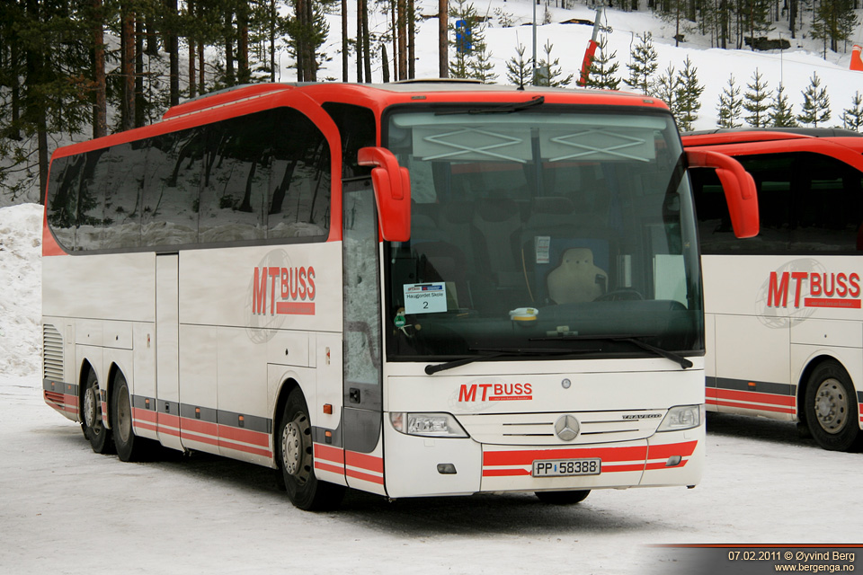 MTBuss #8 fra 2005, Mercedes-Benz O580-16RHD Travego M, ble levert til Scandinavian Touring AS i Kristiansand. Sannsynligvis kom den til MTBuss rundt 2006/2007.