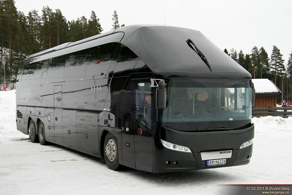 Til slutt fant jeg en skikkelig godbit. Tom-Erik Østerud, eller VIP Transport AS som de kaller selskapet nå, sin Neoplan N5218SHDL Starliner L kjørte også for MTBuss. Faktisk så er denne også bruktimport, såvidt. Den ble registrert på en forhandler i Hamburg 2010-05-12 før den kom til Norge og ble registrert her 2010-06-30. Men særlig langt hadde den ikke gått på den tida, så den var så godt som ny.