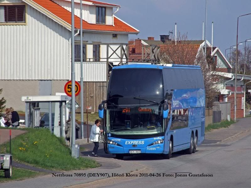 Bussen ovan ska visserligen gå in till stan, men även lokalturerna på Öckerö-Hönö körs ofta med dubbeldäckare, vilket kan verka lite overkill...