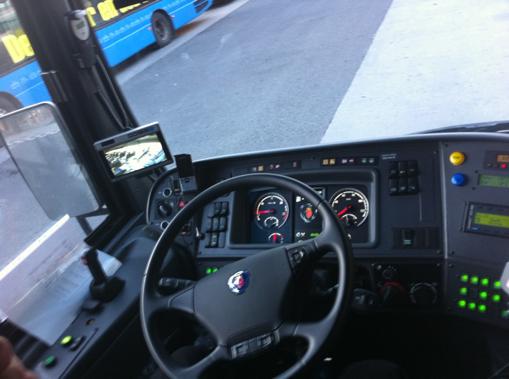 kanske visa lite mer av förarplatsen med stol och instrumentbräda  biljettmaskiner..