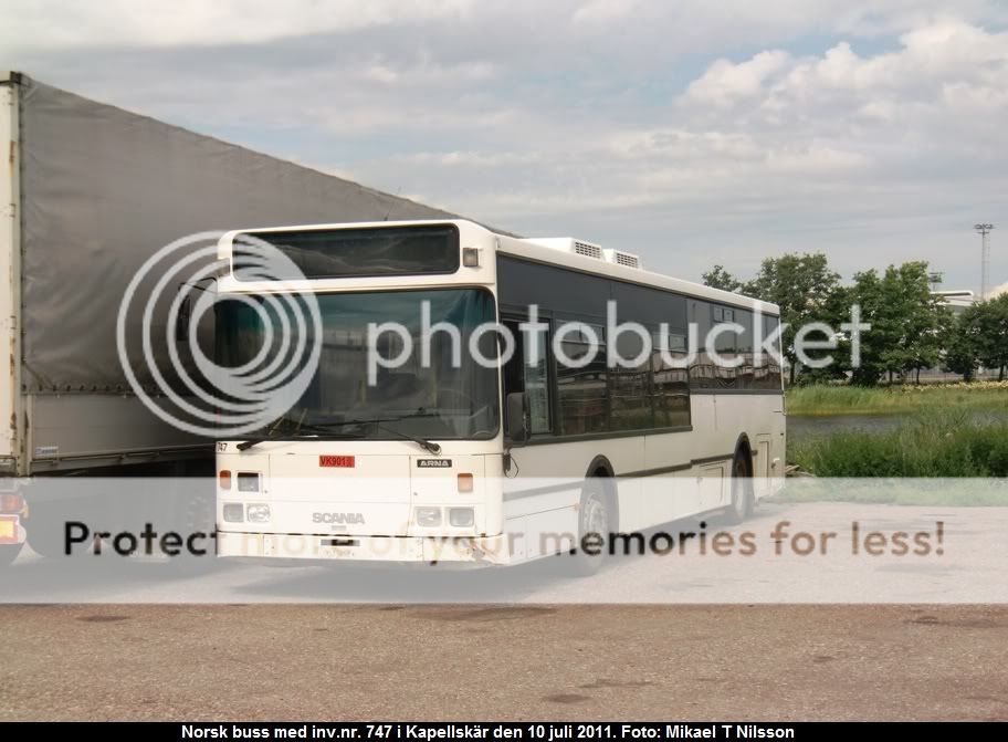 Här kommer några bilder på svenska och norska bussar som ska vidare österut. Först en Arna-buss från Norge. Inv.nr. är 747, men jag vet inte vilket bussbolag bussen tillhört tidigare.