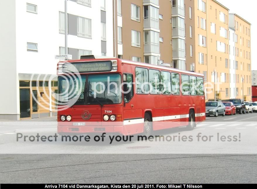 Slutligen linje 687 (Kista C-Vallentuna), som trafikeras av Arriva Märsta. Under vintertabellen är ledvagn vanligast på linjen, men det verkar som att man valt att använda kortvagnar under sommartid. Arriva 7104 är f.d Swebus 3977 (levererad 1996) och tillhör de äldsta kortvagnarna i trafik hos Arriva Märsta.